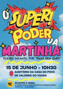 Domingo, dia 15 de junho, o grupo Duas Sem Quês atuou no auditório da Casa do Povo de Valongo do Vouga, com a peça “O Super Poder da Martinha”.
